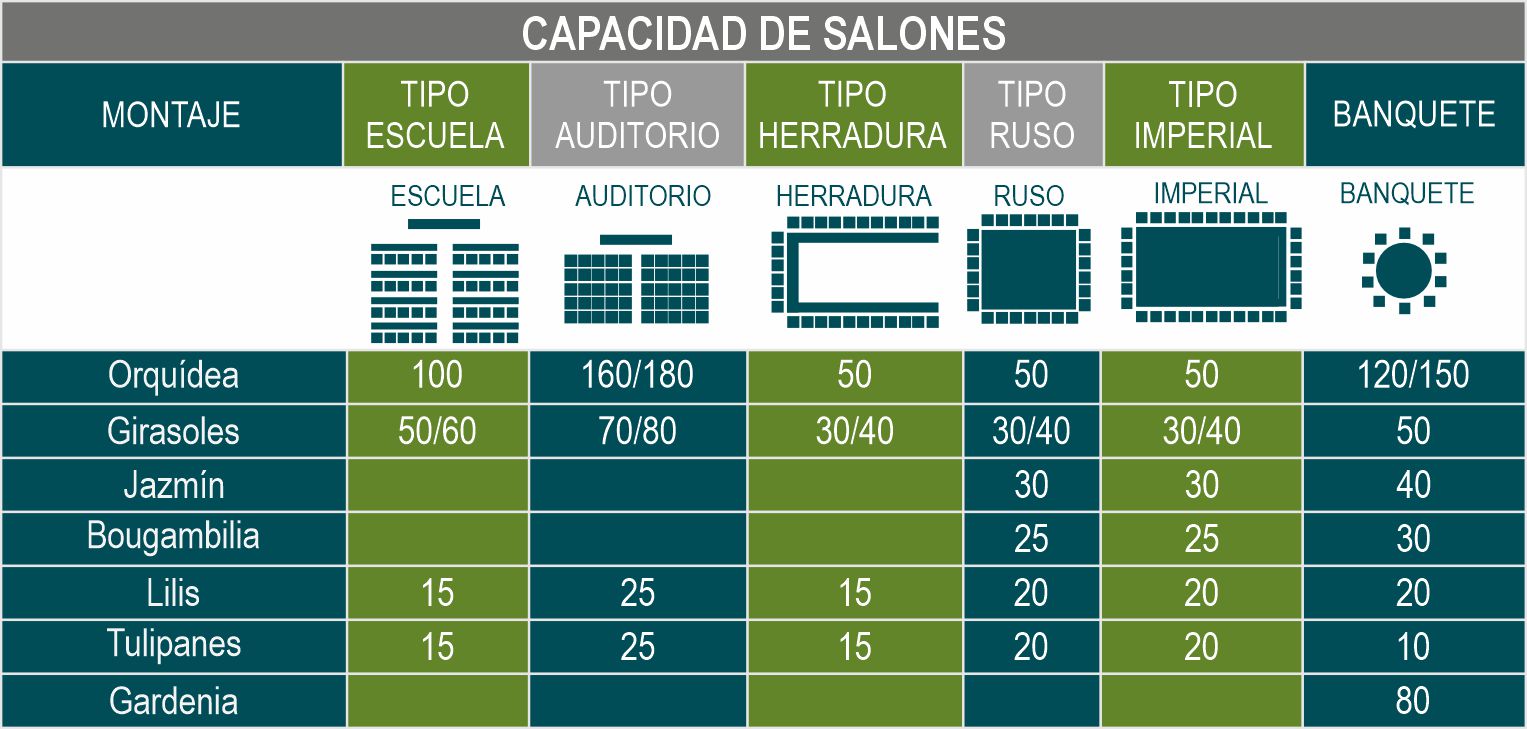 NUESTROS SALONES PARA EVENTOS Sociales, negocios, juntas, graduaciones, cumpleaños WhatsApp Eventos JAZMIN GIRASOLES BOUGAMBILIA ORQUIDEA LILIS TULIPANES HORARIO DE ATENCION De lunes a Viernes de 8:00 AM a 3:00 PM. T: (961) 617-00-00 Cel. Empresarial 9613626340 ventas@hotelpalmareca.com