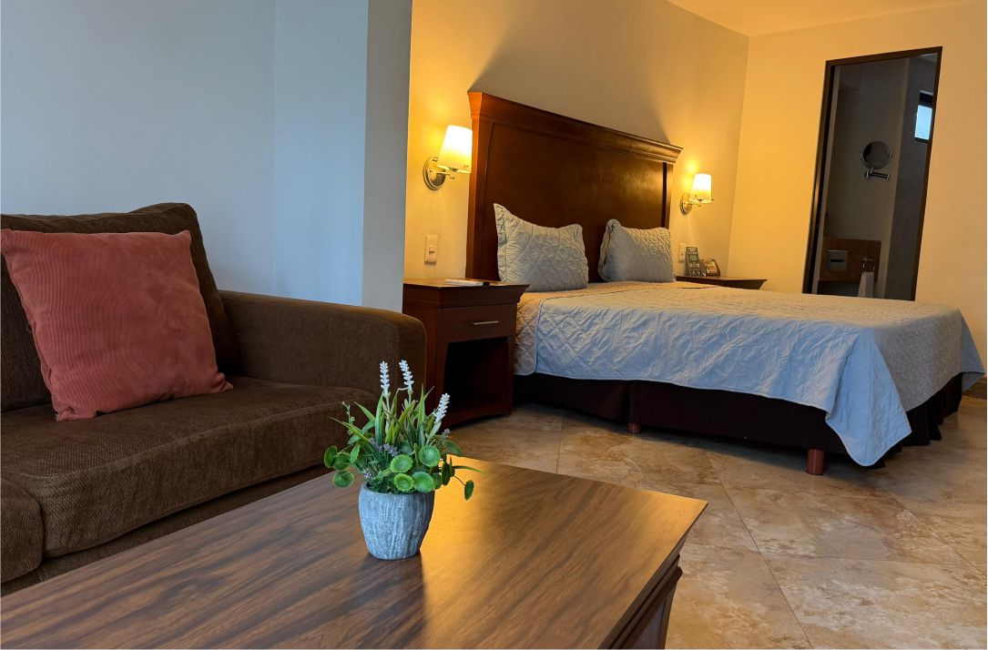 Pensadas en nuestros huéspedes de perfil ejecutivo, el cual desea mayor confort y comodidad con una experiencia completa, han sido mejoradas con el aire acondicionado por mini-split, en donde podrá disfrutar de una excelente vista hacia el área de la alberca y el extenso jardín, ya que todas se encuentran en planta baja.